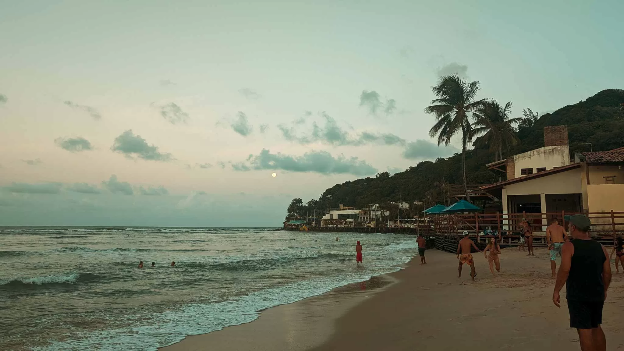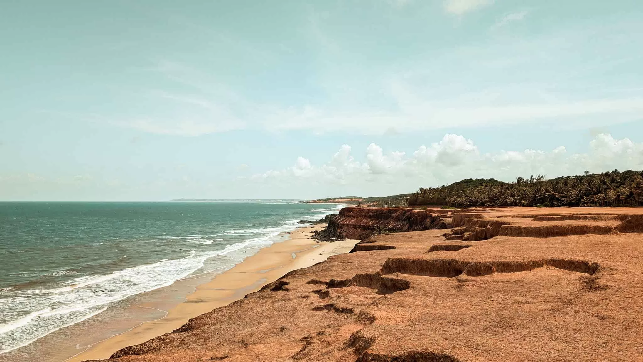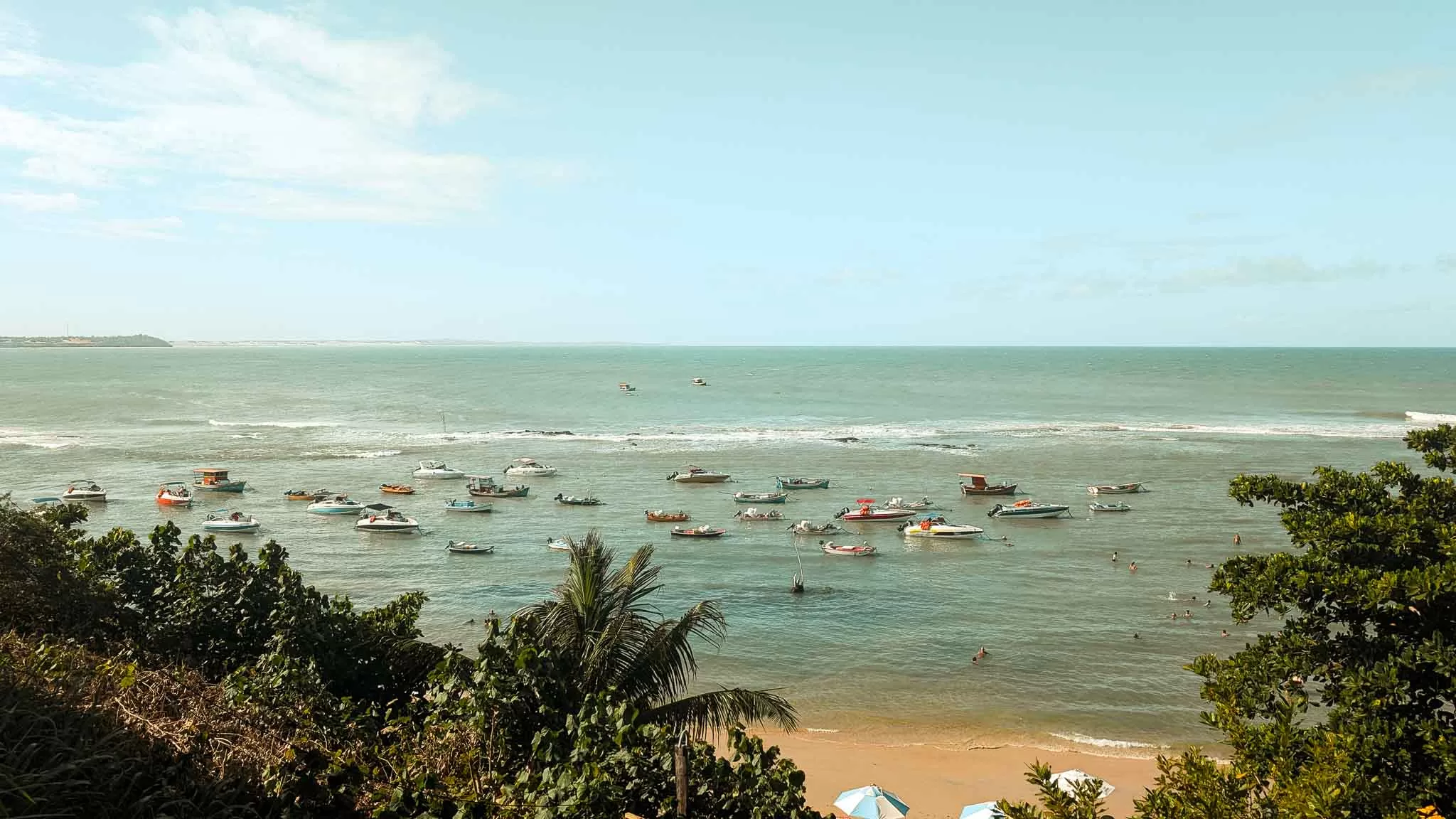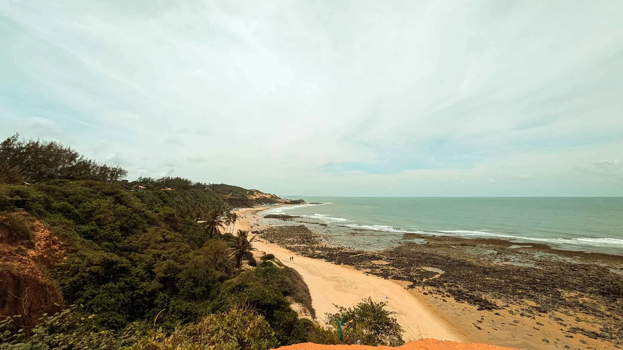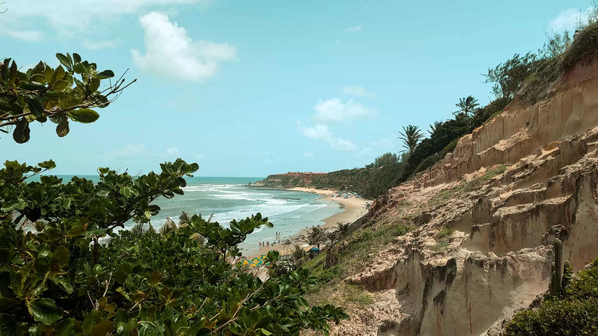 We arrived in Pipa to streets packed full of people walking between shops, bars and the beach, and we strapped on our packs to make the extremely sweaty walk up to our accommodation in the insane heat and humidity. The streets here are very narrow, and even though they’re one-way there is hardly enough room for pedestrians as well as vehicles. This makes for a bit of a headache with the constant stop-starting and trying to dodge cars as well as make your way around other pedestrians. It was obvious straight away that this place wasn’t built to hold this many people, it was pretty chaotic for a beach town. We finally made it to our hostel soaking wet, and I was so surprised that this place was as cheap as it was. This was probably the nicest place we stayed in during our entire South America trip. It had a huge pool, a bar and a restaurant, and our private room was like we were back in Spain paying top dollar for an expensive hotel. It was a little too good actually. I really felt like we were staying at a resort here, which didn’t feel particularly interesting and it’s also a popular spot for digital nomads, and they’re not really the most sociable of people but it was a good spot to wind down for a few days. During our stay I continued to abuse my insides with free breakfasts of the usual sausage, scrambled egg, salami, ham and cheese toasted sandwiches drowned in baked beans with a very tiny side dish of papaya and about 5 coffees. Perfect fuel for a long and unbelievably hot walk through town to the beach.