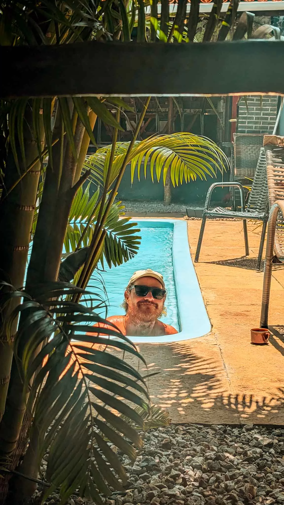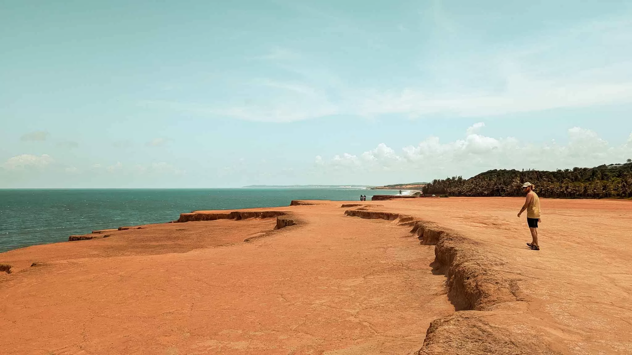 Kuki was an absolute darling, and was extremely welcoming of us to her tiny hostel. This place was so quiet and relaxing, with a pool and a big kitchen and a nice little private room for us. Kuki and her Argentine husband had done a great job filling the area with nice plants and it was just such a nice space to sit back and relax in. We loved this place so much that we stayed five nights, without really doing much at all. We walked to a cool, orange cliff overlooking the ocean and a long stretch of beach which was nice but extremely hot out in the sun. We got to know a really nice Tasmanian bloke called Jim who told us how nice the diving is in Tassie, so we’ll have to add that one to the list. I learnt how to hand sew because we needed to patch up our picnic blanket, which I probably wouldn’t have even attempted if I hadn’t just read in the book “Ship of Destiny” that pirates and sailors are great at hand sewing things. I wasn’t expecting to go through a pirate phase during our time in Brazil but that was a nice surprise! I did a lot of cooking in Kuki’s kitchen, and made an incredible dish of pork chops and pesto beans with a cabbage and orange salad. So bloody unbelievable. There was some absolutely amazing fruit at the local grocery store and we ate many enormous mangoes, pineapples and passionfruits. We also spent a TONNE of time trying to book flights from Natal, the next closest city to the north, and Campo Grande, the city closest to the Bolivian border. Due to us not having a cursed CPF, we were unable to even come close to booking this flight. Even changing our VPN to other countries in South America we were still unable to book it, so we thought “Who do we know that has a CPF and would buy plane tickets for us?” Our new mate, Rodrigo.