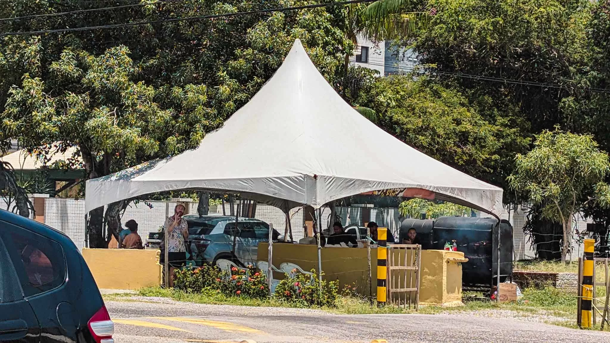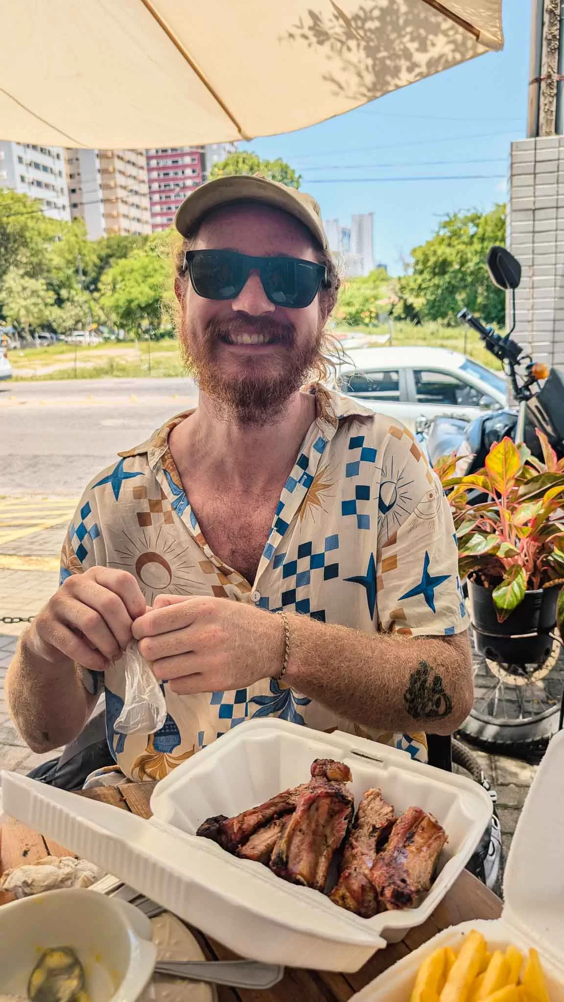 At the café, I spied a healthy amount of smoke spewing from a marquee on the opposite side of the street, so I ventured over to take a look and found huge barbecues grilling chickens and big slabs of pork ribs. Even though it was 10am, I was in no way going to pass up this opportunity, so I asked one of the ladies working if I could try some costelinha de porco, pork ribs. I doubt they receive any gringos at this random shop on the side of the road, so she was very happy to cut me a nice little ribby, and I munched on that while I waited for them to grill me a box, which also came with a surprise box of chips as well. I walked back across the road, absolutely stoked with my luck, and I couldn’t believe I only paid $6AUD for so much meat and potatoes. I was in heaven, and just so in love with this country.