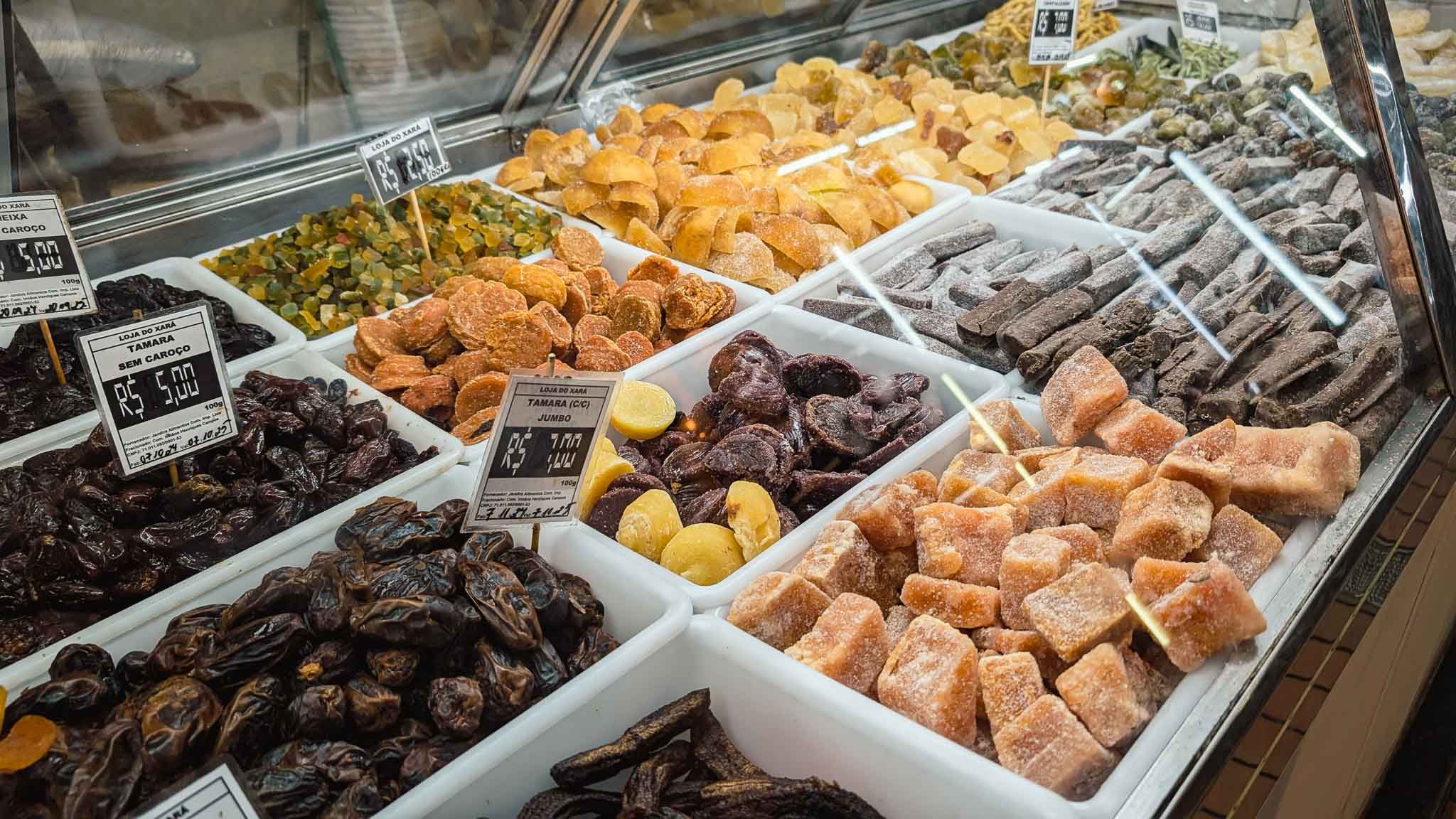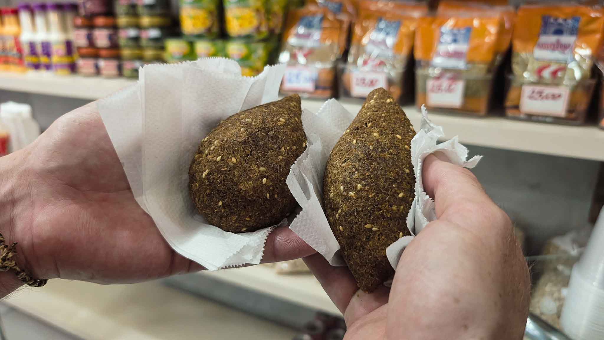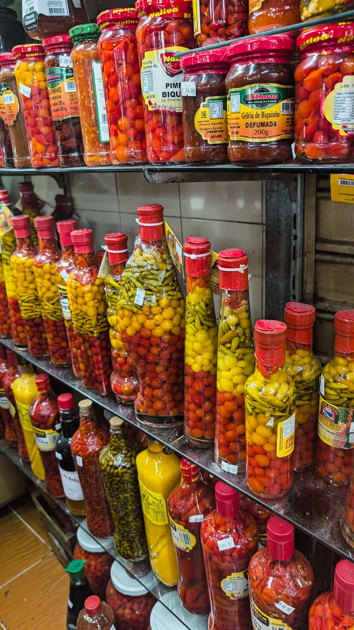 After passing mountains of spices, walls of cheese, shelves loaded with all sorts of hot sauces and pickled chillies, we arrived at Emporio Árabe D’Hana, Hana’s Arabian Emporium, and got stuck into a couple of quibes. A Brazilian version of the national dishes from Lebanon and Syria, a quibe is a heavily spiced lamb mince with onions and walnuts inside a bulgur wheat and lamb mince casing which is deep fried until super crispy and deep brown. Think spices like cinnamon, paprika, coriander, cumin, allspice, sumac and turmeric with marjoram, basil and mint. It’s highly delicious with a good hot sauce, and a hot honey takes it a step further. We stood inside the little Arabian store giggling to each other about how much of each different hot sauce we were drowning these tasty little morsels in. They’re insanely delicious little snacks.