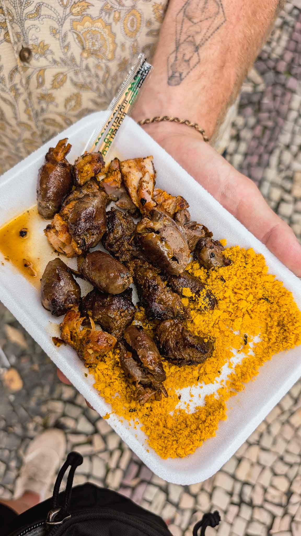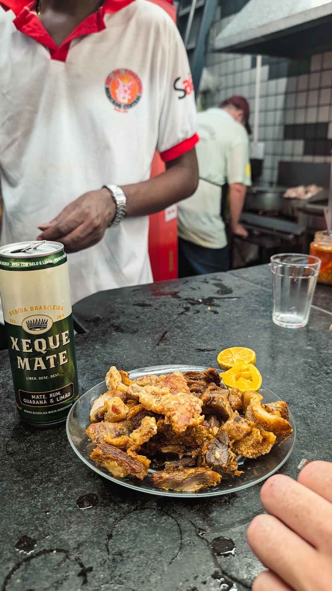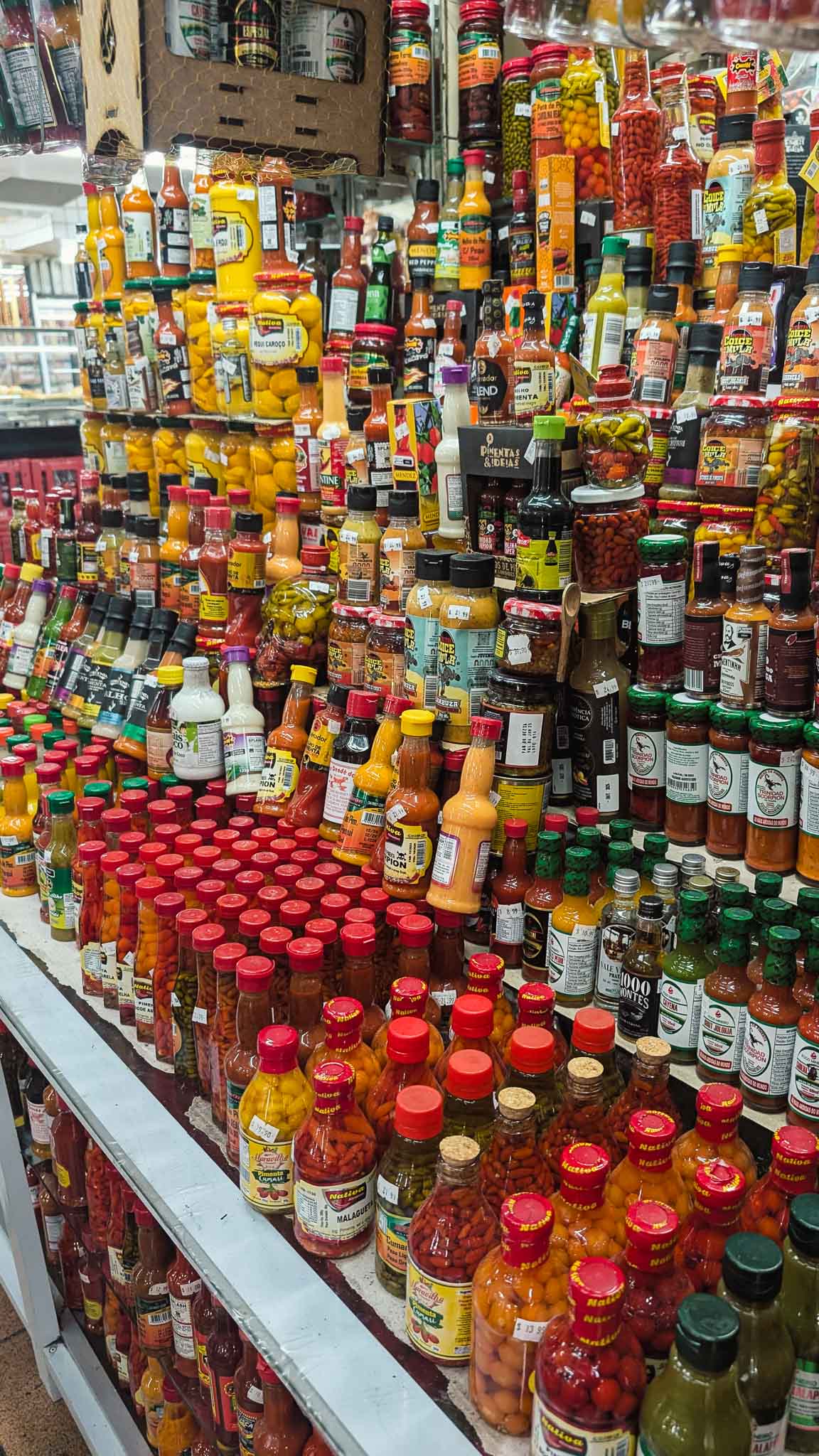 After passing mountains of spices, walls of cheese, shelves loaded with all sorts of hot sauces and pickled chillies, we arrived at Emporio Árabe D’Hana, Hana’s Arabian Emporium, and got stuck into a couple of quibes. A Brazilian version of the national dishes from Lebanon and Syria, a quibe is a heavily spiced lamb mince with onions and walnuts inside a bulgur wheat and lamb mince casing which is deep fried until super crispy and deep brown. Think spices like cinnamon, paprika, coriander, cumin, allspice, sumac and turmeric with marjoram, basil and mint. It’s highly delicious with a good hot sauce, and a hot honey takes it a step further. We stood inside the little Arabian store giggling to each other about how much of each different hot sauce we were drowning these tasty little morsels in. They’re insanely delicious little snacks.