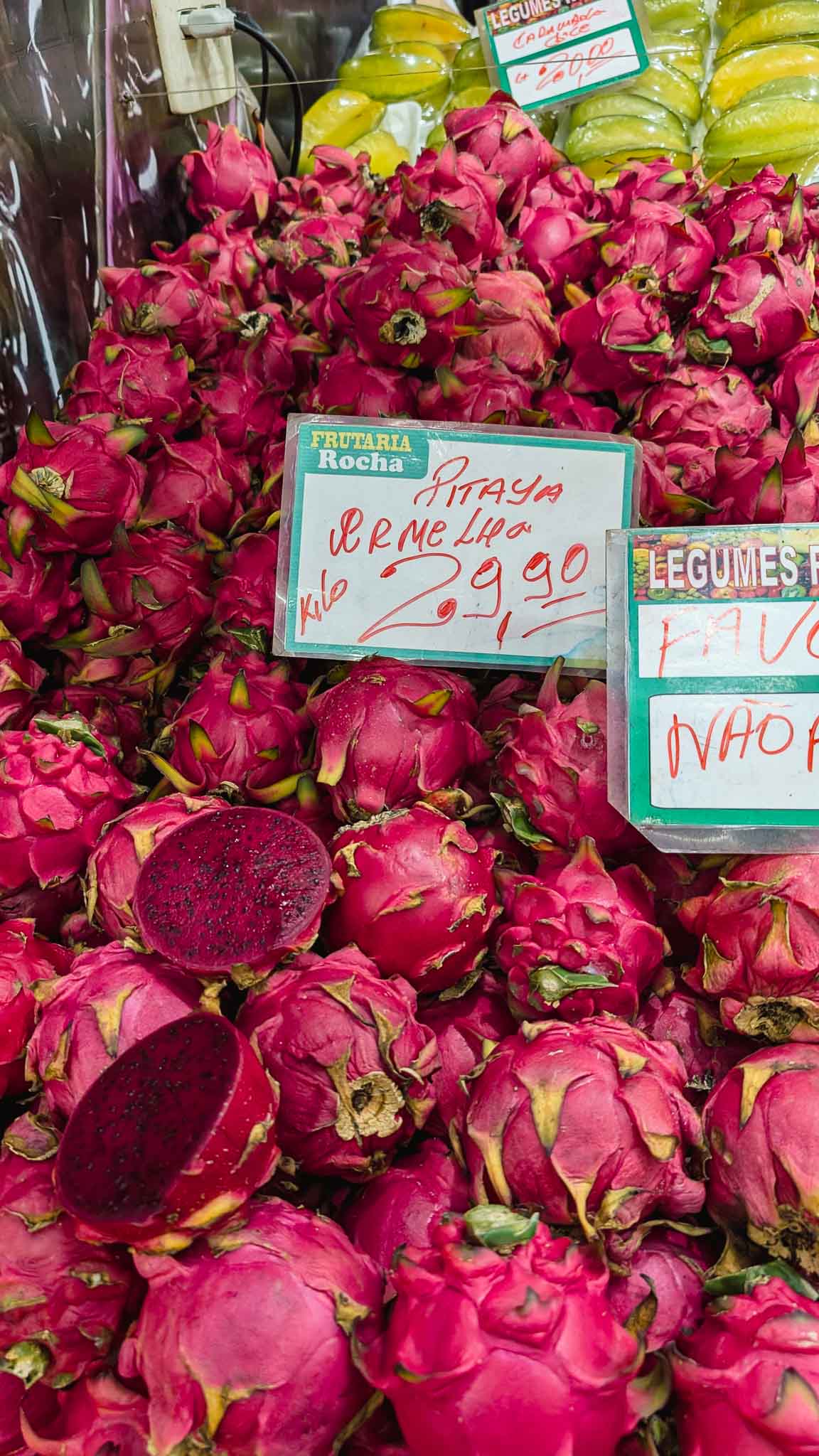 Then we were on the hunt for a highly recommended bar dishing up cervejas e torresmo, beers and deep fried pork belly. We walked around this absolute maze of a market forever trying to find the right bar. We passed shops selling piles of lollies, beautiful arrangements of different flavoured sausages, all sorts of dried nuts, huge stands of super fresh and colourful fruits and more massive wheels of aged cheeses before we finally found what we were looking for. This place was tiny and super crowded, but the bloke taking orders cleared a space for Rachael and I at the counter, where I could watch the huge pots of boiling oil deep fry chunks of pork belly. I ordered a beer and a plate of very salty, crispy and fatty torresmo which came with oranges to squeeze over it all. We also had a xeque mate, which is a popular drink of rum with lemon, a caffeinated herb tea called mate, and guaraná, an amazonian fruit. It was very indulgent of us (me) to be munching down pork belly and swigging on a beer at barely 12pm, but I was in my element here and having a ripper of a morning.